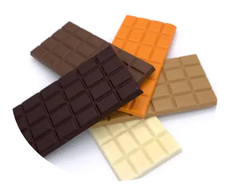 Chocolat à base de chocolat blanc avec une belle couleur orangée et délicatement parfumé à l’orange