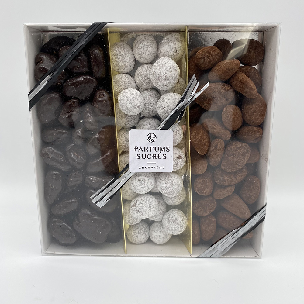 33,50 € quantité de Trilogie gourmande Ajouter au panier Description Description Assortiment de Galets de la Touvre, noisettes et fèves de cacao Paquet de 375g Produits similaires Fèves de cacao torréfiées enrobées de chocolat noir 17,50 € Charentaise en chocolat 19,00 € Galets de la Touvre 12,60 € – 29,40 €Plage de prix : 12,60 € à 29,40 €