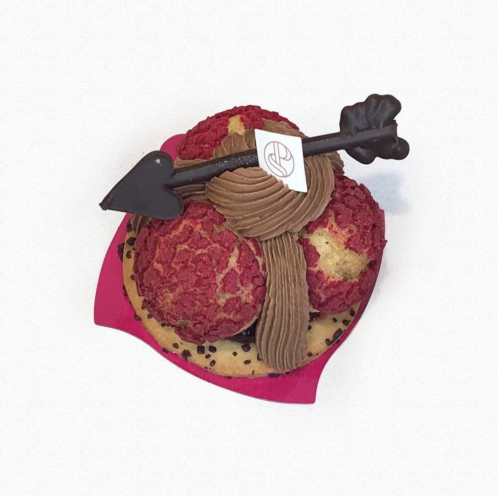 Choux garnis crémeux chocolat noisette, mousse chocolat, praliné noisette, noisettes concassées